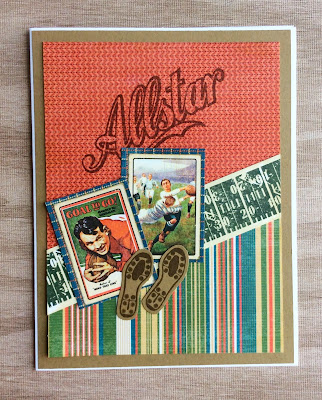 This particular Graphic 45 pad, I won on a blog contest years ago. I shouldn't have put it in the drawer because I don't think I had used it at all yet! So, I decided to combine this with a couple sports stamp sets I have to make a few cards!